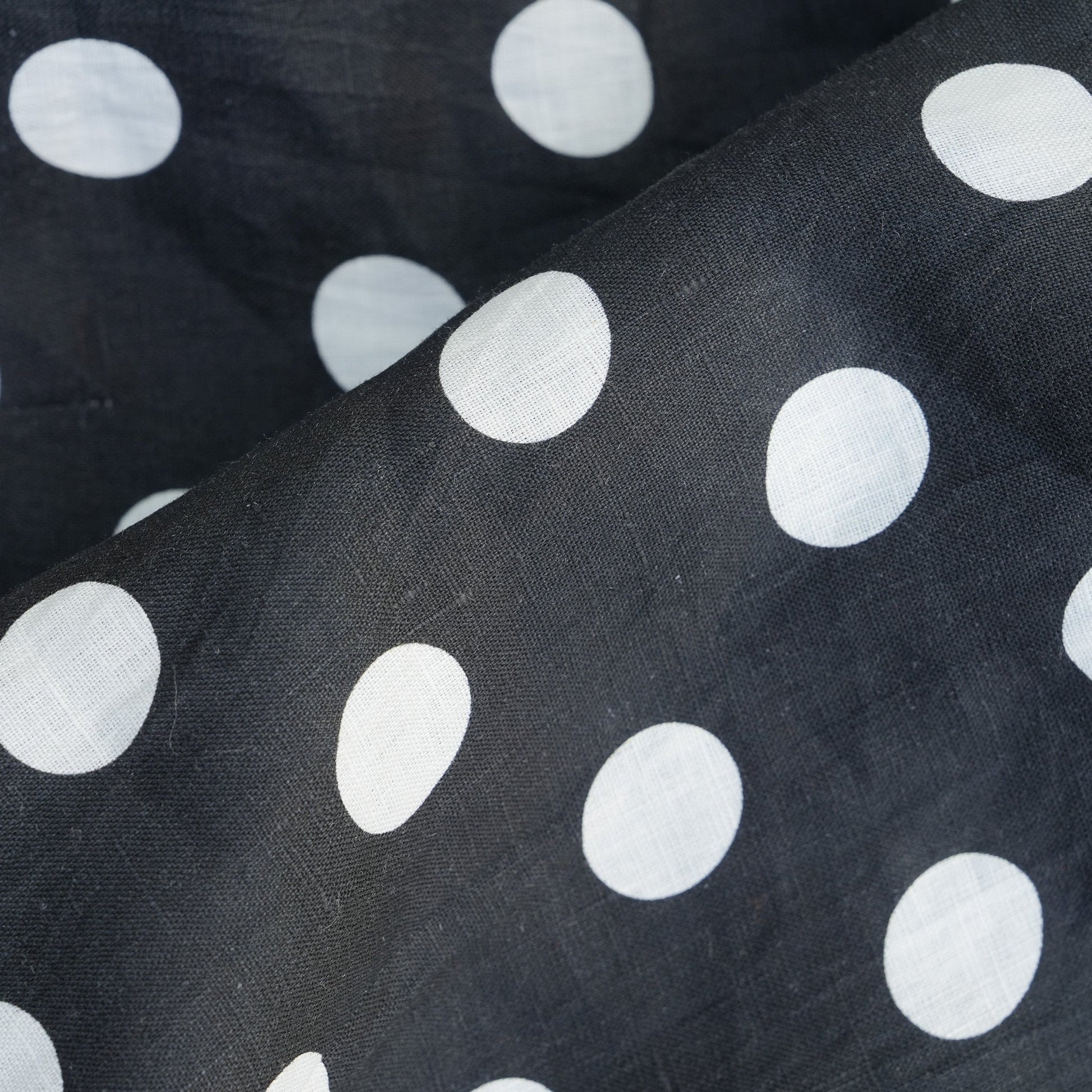 Keywords for SEO: 100% cotton poplin fabric, black and white polka dot cotton, OEKO-TEX certified cotton fabric, lightweight cotton poplin, sustainable cotton poplin fabric, sewing fabric for shirts and dresses, cotton fabric Australia, artisan printed cotton fabric.